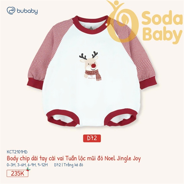 Bu Bodychip dài tay CV tuần lộc mũi đỏ noel - Trắng kẻ đỏ