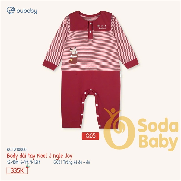 Bu Body dài tay noel Jingle Joy - Trắng kẻ đỏ