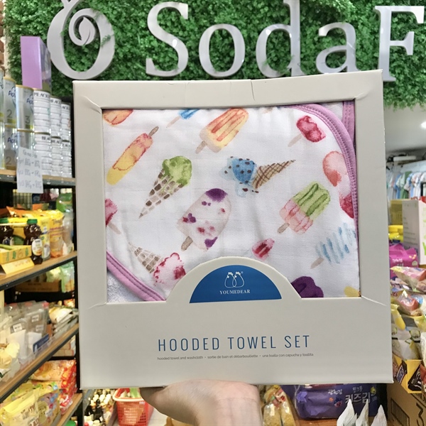 Khăn Muslin mặt lông liền nón xuất Anh (76*76) -Que kem